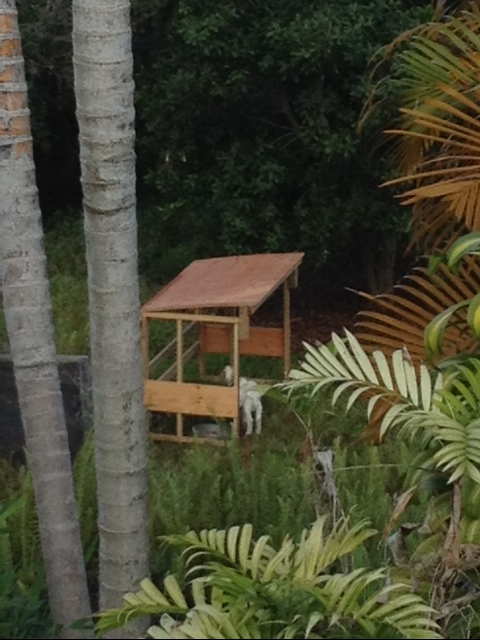 The problem is, we dont really like eggplant that much.... the good news is little Ippy, the goat that you will remember I wanted BAAAAAAADLY, loves eggplant! And by the way, John built him a little house to be out of the rain, which we get a lot of in the summer apparently!